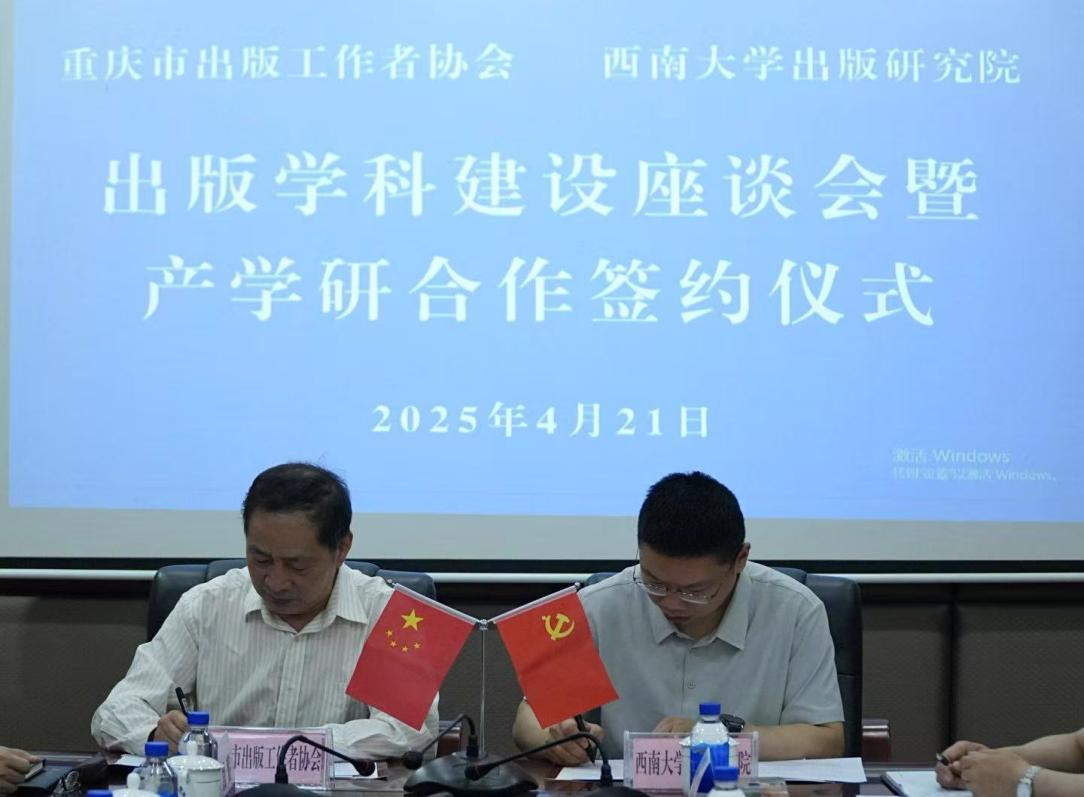随后,签约仪式正式启动。重庆市出版工作者协会会长周安平与学院院长龙伟分别代表双方签订了合作协议,并共同留影纪念。