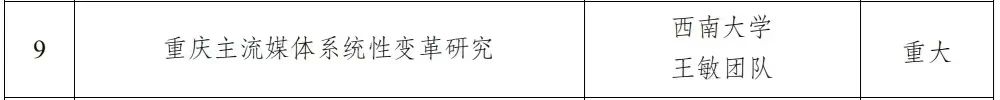近日,重庆社会科学院公布了重庆市哲学社会科学创新工程2024年度第二批研究项目立项名单,h漫 王敏教授团队申报的《重庆主流媒体系统性变革研究》获批重大立项!
