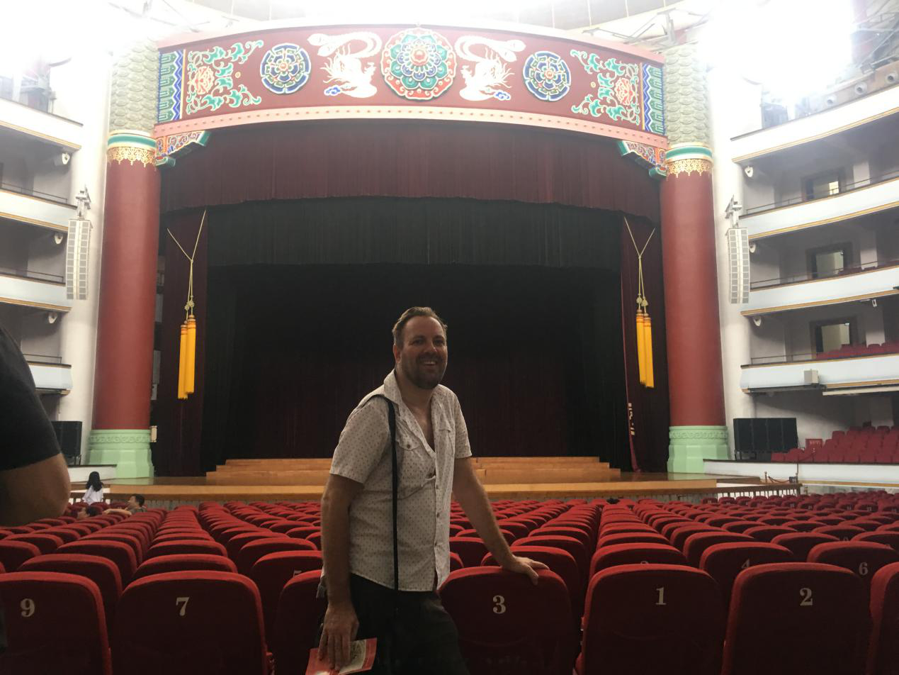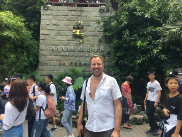 大巴上,导游热情地用英文介绍重庆的历史和文化,让外国专家对重庆有了更深的了解。到达大礼堂之后,不少当地中学生找Craig合照,并同Craig进行交流。志愿者同Craig一起进入大礼堂内,并合影留念。