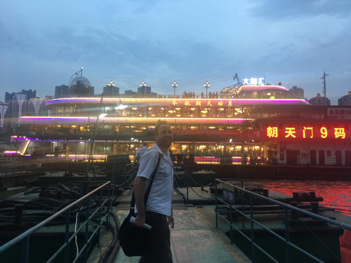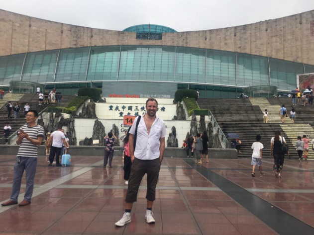 弹子石面朝长江,拥有非常好的观景视角。Craig在弹子石与长江合影,并和其他外国专家一起共用咖啡,大家交流着对重庆的看法。