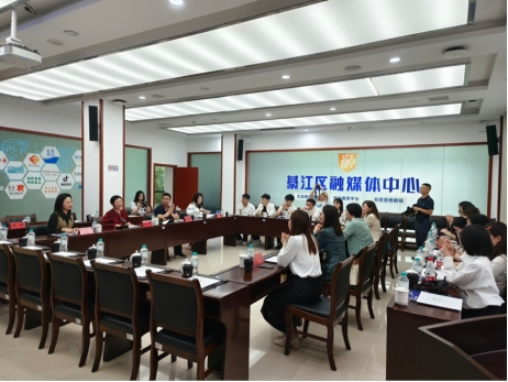 为创新人才培养模式,推动理论研究与实践实训深度融合,支部成员来到綦江区融媒体中心进行交流调研,学习了解綦江融媒体中心在媒体矩阵搭建、数字文化生态、赋能基层治理、双创孵化基地、智慧融媒实训等方面的创新成果,与綦江区融媒体中心共同探索高校和地方、学科和行业间的共赢模式。交谈坐流会上,綦江区融媒体中心党组书记、主任孙萍等领导诚邀h漫 师生关注并支持,希望学院师生为融媒体中心发展提供智力支撑、学术支持。支部书记汤天甜从党建工作和学科建设角度提出双方在共建红色文化基地、马克思主义新闻观实践基地,共商影像传播、媒体传播以及创新创业赛事等维度的合作可能。