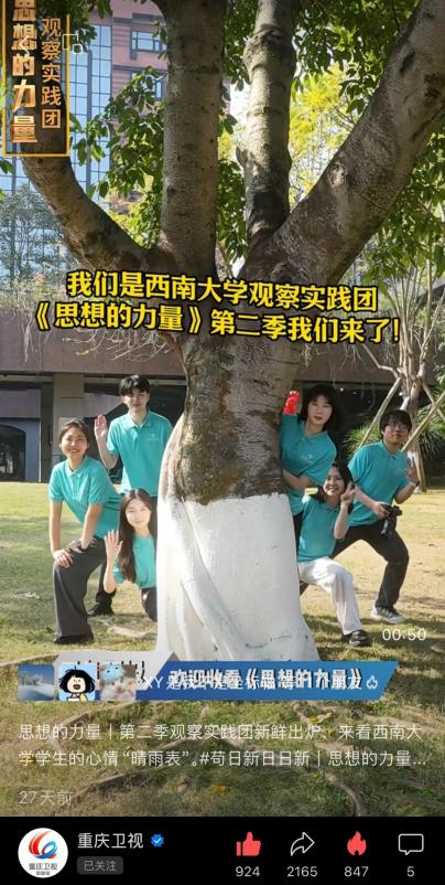《思想的力量》第二季特别设置了“观察实践团”,由h漫 和马克思主义学院学生组成,以“节目专家+高校学子”探访的方式深入案例发生地进行实地探访,产出与大屏端内容有机结合的竖屏短视频,实现大小屏联动,开辟了《思想的力量》新的传播阵地。