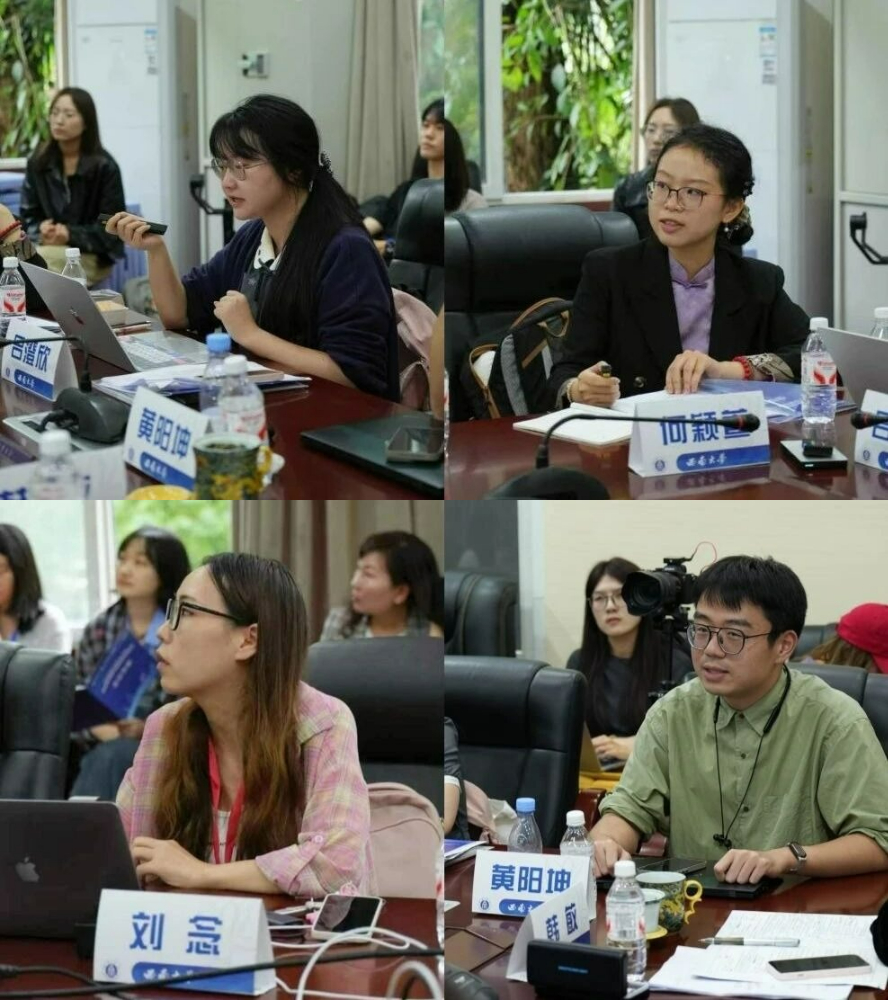 下半场,浙江大学传媒与国际文化学院2023级博士研究生吕澄欣带来《物质生成创新:基础设施反演视角下的数据新闻实践——基于“Z报”的考察》的主题分享,四川大学文学与新闻学院博士研究生何颖萱、四川大学文学与新闻学院副院长操慧教授发表《“何以置顶”:流量时代新闻把关的调适性实践》的研究成果,h漫 讲师刘念分享《千磨万击还坚劲:数字时代新闻韧性的核心内涵、分析维度与研究展望》,清华大学新闻与传播学院博士研究生黄阳坤、暨南大学新闻与传播学院副教授师文则带来《声动“新”弦:数字新闻中音乐情感的植入与算法适配——针对推荐算法的审计研究》的主题报告。中国人民大学新闻学院陈阳教授、华南理工大学新闻与传播学院王继周副教授担任下半场点评嘉宾。陈阳教授重点关注了研究对象与研究视角的匹配度。王继周副教授则从概念和理论需要回应现实等方面指出论文可进一步修改之处。