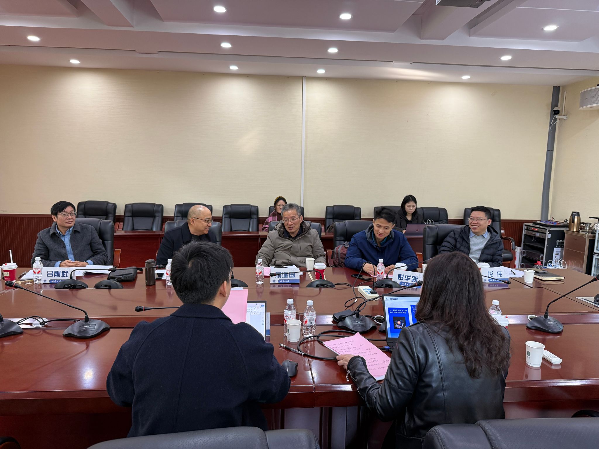 会上,两位项目负责人分别围绕课题时代背景、研究现状、核心内容、研究方法及实施计划展开详细汇报。王敏教授表示,课题将融合多学科理论深挖“可见性—公共性”框架潜力,拓展新闻公共性研究理论边界,为完善中国特色数字新闻学理论体系、构建健康舆论生态提供支撑;汤雪灏老师提出,课题将影像史学理论融入中共影像研究,突破传统研究“重文字”的局限,深化对党运用媒介开展国际传播的历史认知。