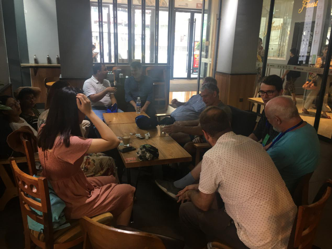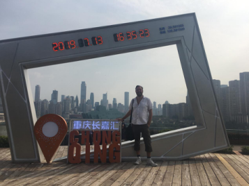 弹子石面朝长江,拥有非常好的观景视角。Craig在弹子石与长江合影,并和其他外国专家一起共用咖啡,大家交流着对重庆的看法。