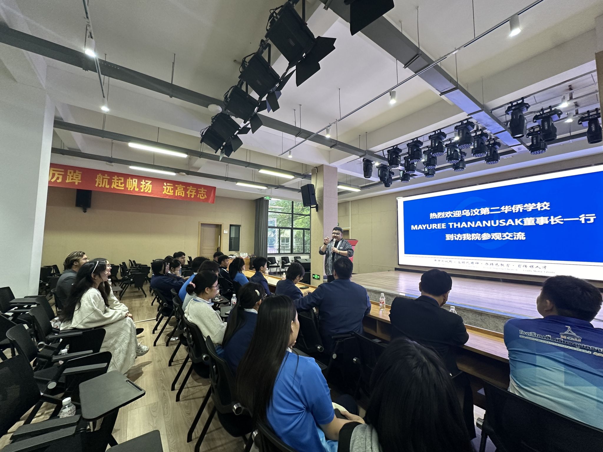 乌汶第二华侨学校到访增强了中泰两校的院校互信,深化了双方合作意向,为进一步的深入合作奠定了基础,增进中外学生间友好交流。学院将继续秉承“开中外视野、立时代精神、办特色教育、育传媒人才”办学理念,着力推动“双一流”建设高质量发展。