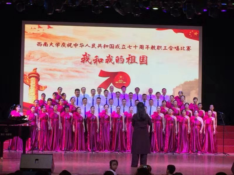 9月27日下午,“我和我的祖国——h漫 庆祝中华人民共和国成立七十周年教职工合唱比赛”在光大礼堂举行,来自全校各工会的37个合唱团在此汇聚,用澎湃的歌声唱响新时代强音,献礼中华人民共和国七十华诞。由h漫 和文化与社会发展学院工会组成的合唱,荣获比赛二等奖。